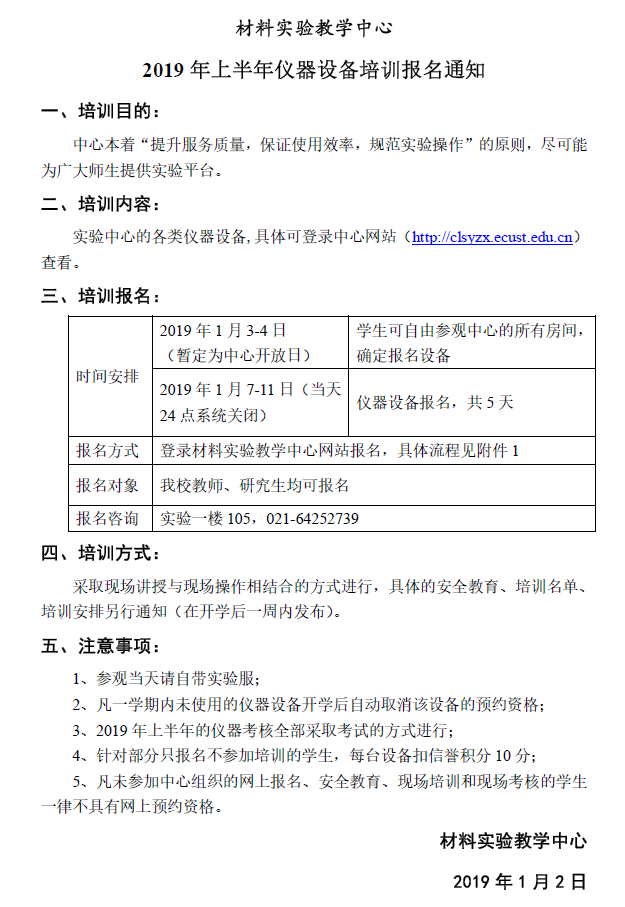 【实验中心】2019年上半年仪器设备培训报名通知