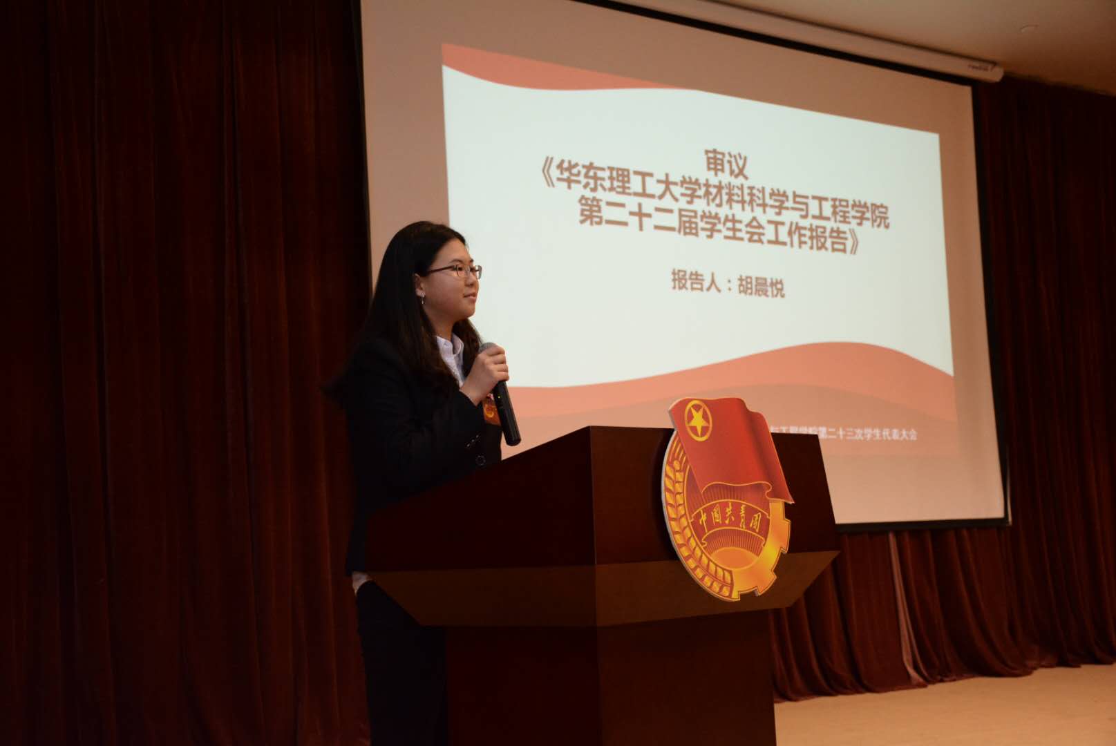 第二十二届学生会主席团作了题为“求梦想起航向未来,青春建功新时代”的工作报告,报告全面总结了过去一年学生会坚定理想信念,把握时代脉搏;创新组织建设,提升团学活力;立足文化建设,打造品牌特色;加强媒体运营,宣传国产自拍