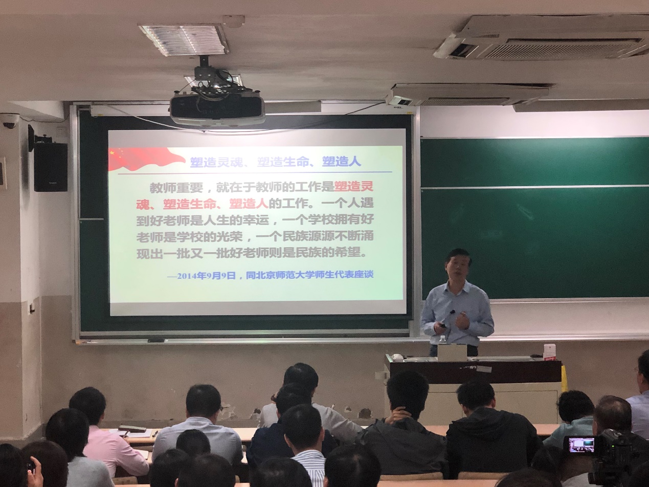 唐颂超首先作《学习习近平总书记关于师德师风的论述》专题党课。他首先与教师们一起学习了习近平总书记关于“师德师风”的重要论述,回顾了习近平总书记对于教师的期望和寄语,他指出教师是立教之本、兴教之源,要时刻铭记教书育人的使命,做“四有”好老师。唐颂超强调评价教师队伍素质的第一标准应该是师德师风。好老师要有“捧着一颗心来,不带半根草去”的奉献精神,自觉坚守精神家园、坚守人格底线,带头弘扬社会主义道德和中华传统美德,以自己的模范行为影响和带动学生。最后,他勉励全院教师不能只做传授书本知识的教书匠,而要成为塑造学生品格、品行、品味的“大先生”。