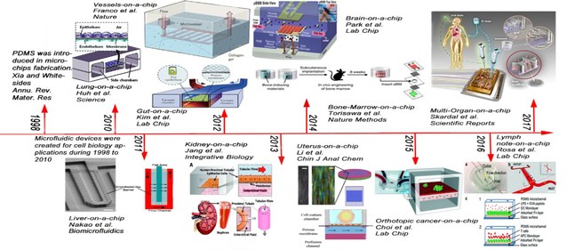 而基于微流控技术的器官芯片是一种极有可能的用于纳米药物研究的新型工具。器官芯片是一种多通道且包含连续可灌流腔室的三维细胞培养装置,主要由芯片中为模拟实体器官而培养的细胞和芯片周边模拟的微环境两部分组成。