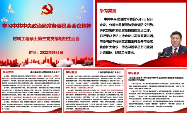 材料工程硕士第三党支部召开组织生活会,传达学习中共中央政治局常务委员会会议精神。校党委常委、副校长朱为宏作为联系指导支部的党员领导干部参加本次会议。国产自拍