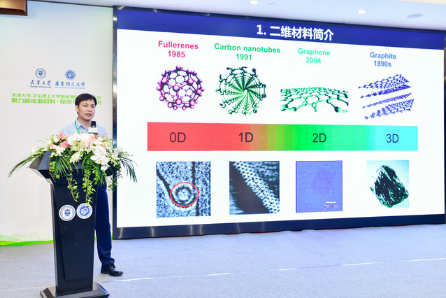 副院长范晓彬教授以“二维材料与低碳发展:机遇与挑战”为题,介绍了二维材料石墨烯及其在低碳领域中的应用,主要涵盖在二次电池、电热产品、防腐涂层、绿色建筑、导热散热和润滑油等方面,分析了在低成本宏观制备及其分散性等方面的难题和挑战。