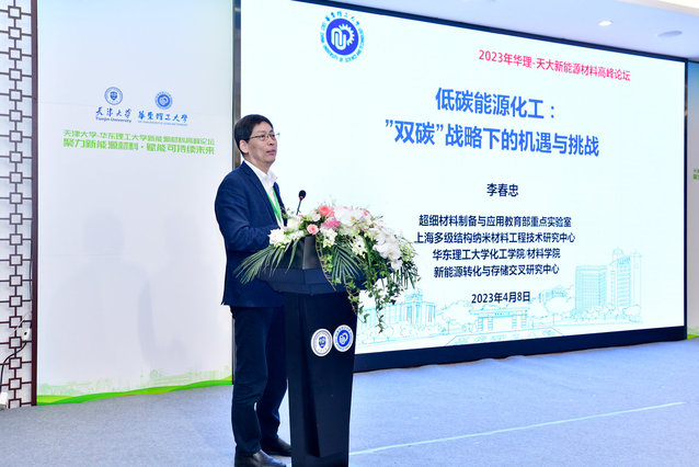 院长李春忠教授作“低碳能源化工:‘双碳’战略下的机遇与挑战”主题报告,介绍了“双碳”战略时代背景、低碳能源化工未来发展方向,聚焦绿电合成与过程强化、储能材料与储能电池、多元改性聚合物材料三个方面进行了重点阐述。他指出要构建从基础研究到产业化应用的全链条创新体系,实现低碳能源化工与先进装备、人工智能的融合创新。