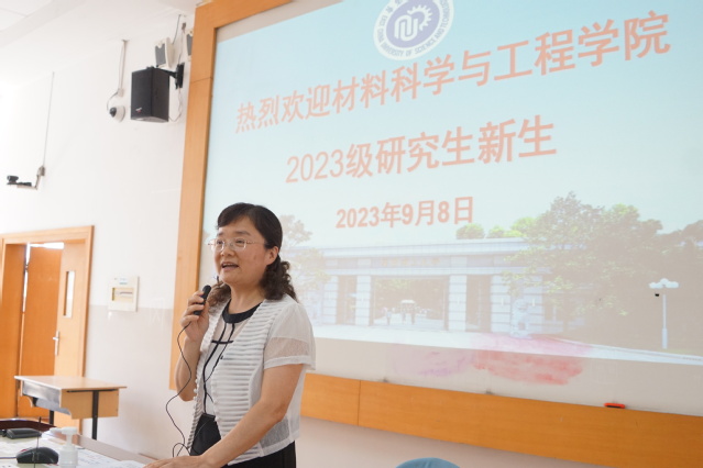 全体师生对新生的到来表示最热烈的欢迎,她强调,在国家对于科技创新工作愈发重视的大背景下,习近平总书记在党的二十大报告中对教育、科技、人才工作进行一体化部署,作为新时代研究生、材料人,应当将个人成长与国家发展、社会所需结合起来。对于大家即将开启的研究生学习生活和科研工作,袁媛提出三点期望:一是心怀“国之大者”,坚定理想信念;二是练就过硬本领,善于思考创新;三是涵养研学作风,脚踏实地做事;秉承“勤奋求实,励志明德”的校训精神,以梦为马,不负韶华,在华理收获丰硕的成果。