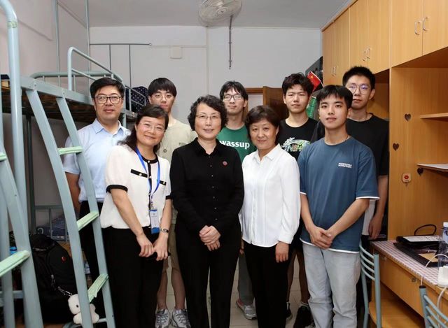 党政领导班子到宿舍看望新生,与学生和家长亲切交流。