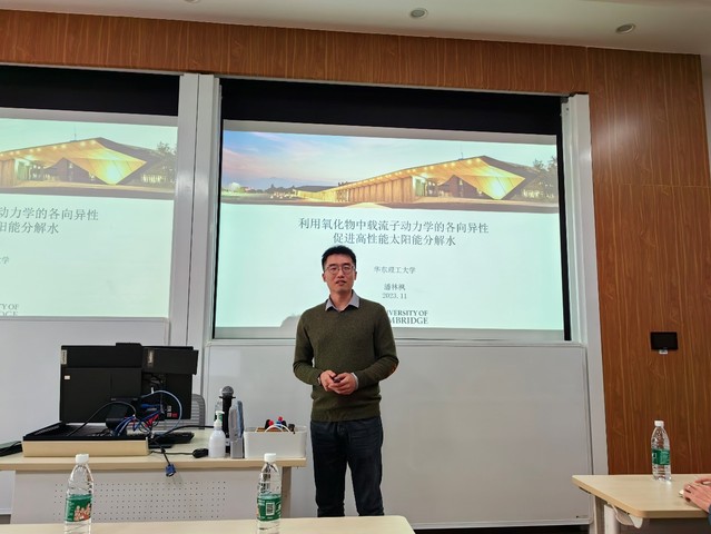 校友、剑桥大学博士后研究员潘林枫博士来访,并作题为“Unveiling Anisotropic Carrier Mobility, Lifetime, and Surface Defects in Oxides for Solar Fuels Generation(揭示氧化物中的各向异性载流子迁移率、寿命和表面缺陷用于太阳能燃料生成)”的学术报告。报告会由杨化桂教授主持,来自国产自拍