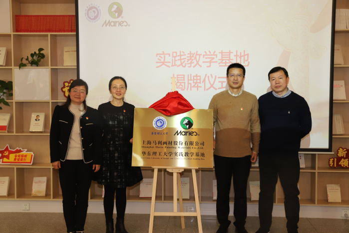 与上海马利画材股份有限公司(以下简称“马利画材”)党建联建暨实践教学基地签约揭牌仪式。马利画材董事长兼党支部书记蒋熙洲、总经理兼党支部副书记闫加伟、董事秘书王青青、技术中心主任莫振宇,国产自拍