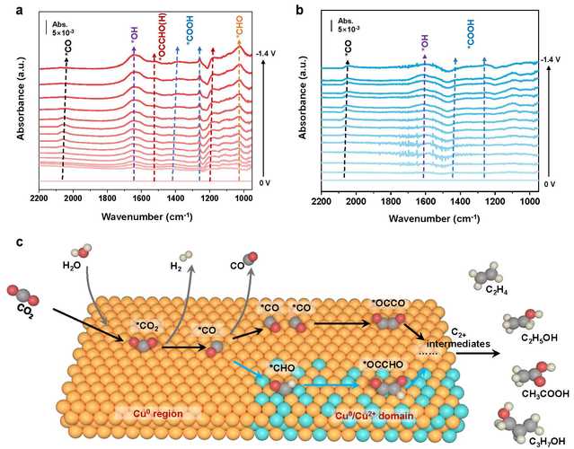 清洁能源材料与器件团队在二氧化碳电还原C-C偶联机制领域的最新研究成果。