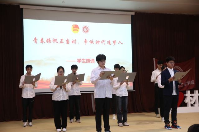 大会分为两个阶段,第一阶段是纪念五四运动105周年表彰大会,以朗诵《青春扬帆正当时,争做时代追梦人》开场,彰显了青年大学生昂扬勃发的青春姿态。