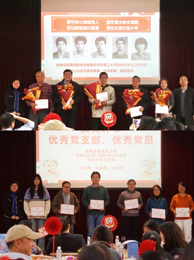 为2024年退休的教职工举办了荣退仪式,向他们多年来的辛勤付出致以崇高敬意。袁媛和杜建忠为荣退教职工颁发纪念证书并赠送鲜花,大家饱含深情地分享了自己的心路历程,表达了对组织培养的感恩之心以及美好祝愿。联欢会上还表彰了国产自拍