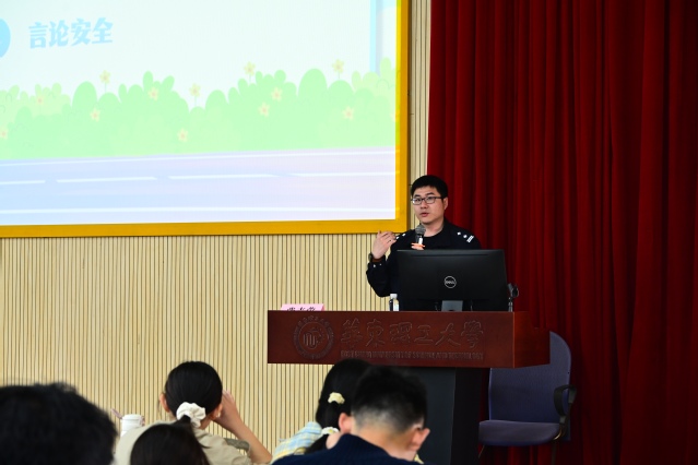 张志荣指出,当前大学生面临安全挑战主要包含了人身安全、财产安全、消防安全以及言论安全。他通过具体的案例解析,详细讲解了预防各类安全问题的常见措施。他强调,在人身安全方面,应严防打架斗殴,保持健康心理,避免单独前往偏僻或危险区域,外出需与亲朋保持联系;在财产安全方面,应妥善保管贵重物品预防盗窃,警惕诈骗等情况;在消防安全方面,应时刻预防宿舍火灾,并学习防火灭火常识;在言论安全方面,应理性认识国际形势和国内现状,要做到明辨是非、理性言论。