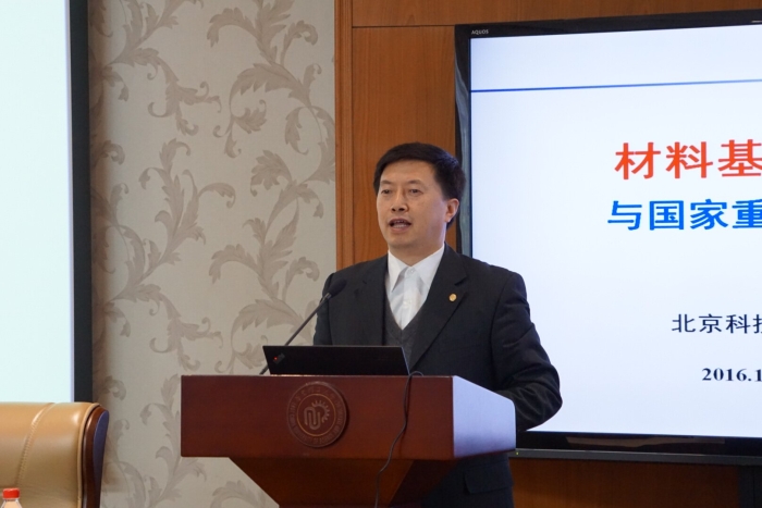 报告会上,谢建新介绍了材料基因组计划的背景和意义,阐述了该计划的内涵与战略目标。谢建新描绘了材料基因组计划国内外的发展现状和趋势,并着重指出国内外在机制、人才队伍以及研究水平和条件上的差距,鼓励与会师生关注并致力于实现材料基因组计划。随后谢建新通过典型案例解释了材料基因组计划的核心目标,即两个“一半”,或称双减半。最后,谢建新简单介绍了“材料基因工程关键技术与支撑平台”国家重点专项,其主要任务是完成3大平台建设、4大关键技术研发、5类材料验证性示范应用。