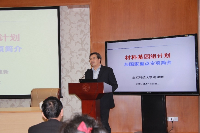 副校长刘昌胜教授邀请,中国工程院院士、北京科技大学谢建新教授来校访问,并作了题为材料基因组计划与国家重点专项简介的专题报告,报告会由刘昌胜主持。涂善东教授、李春忠教授、林嘉平教授等参加了报告会。