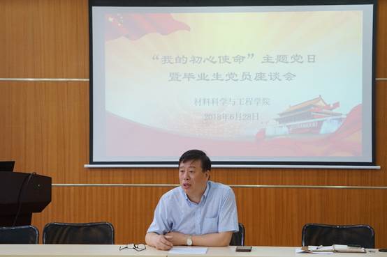在实验一楼第一会议室举行了毕业班党员“我的初心使命”主题党日活动,党委书记唐颂超为毕业生党员上了离校前最后一次专题党课,本科生和研究生毕业班党员代表参加了此次活动。