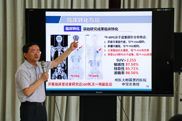 报告伊始,朱新远从交通大学的历史沿革说起,详尽地介绍了上海交通大学从起源到发展再到壮大的历程,以及交大和华理密不可分的关系。接着,朱教授介绍纳米药物技术近年来取得的较大进展,将纳米技术应用于给药系统的构建为癌症治疗带来了福音和希望。朱教授的团队在纳米给药系统的研究中一步步进行技术创新,针对肿瘤治疗中的各种体内屏障发展了简单、高效的纳米给药系统。该系统利用可生物降解的酯键将疏水性抗肿瘤药物与亲水性抗肿瘤药物直接缀合,得到了两亲性药-药缀合物,在水中可以自组装形成纳米颗粒,使其能在血液循环系统中比自由抗肿瘤药停留更长时间。利用肿瘤组织的通透性增强与滞留效应,该药-药缀合物纳米颗粒可以更有效地到达肿瘤细胞,且在进入肿瘤细胞后可抑制肿瘤细胞的多药耐药。之后,在细胞环境下该药-药缀合物可以通过酯键水解,释放出两种抗肿瘤药物,达到协同治疗癌症的效果。该纳米给药系统的构建简单易行,目前在临床上已经得到应用,近300位肺癌患者接受治疗,反响良好。