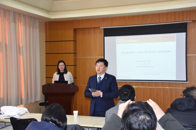 1月17日下午,《Nature Nanotechnology》副主编Dr. Wenjie Sun受邀来校访问,并作了题为“Publishing in Nature journals:An insider’s view of Nature journals”的精彩报告。报告由副校长刘昌胜院士主持,国产自拍