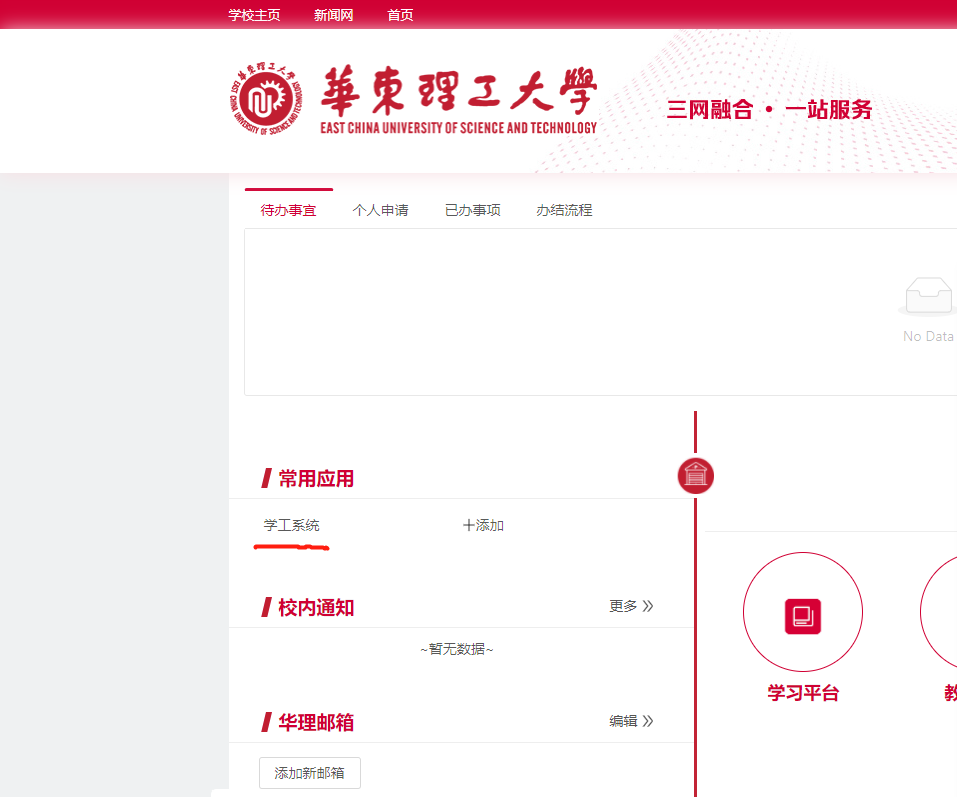 2.进入学工系统(需要校园网登入或使用VPN)