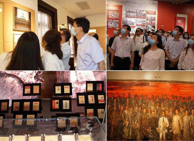 党政班子来到太平湖畔的中共一大纪念馆参观。红色起点,朴素而庄重。进入纪念馆厚重的大门,犹如走入了一百年前“伟大的开端”,展厅内“步步有景,步步有故事”。《共产党宣言》72种版本全部展出,分别讲述翻译宣言、出版宣言、守护宣言三个篇章。大家通过观看学习资料、视频短片、听取现场讲解等,了解建党故事,致敬百年党史,感悟初心使命,回顾百年来中国共产党团结带领中国人民开辟的伟大道路、创造的伟大事业、取得的伟大成就。