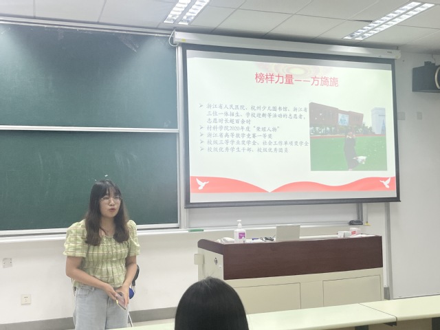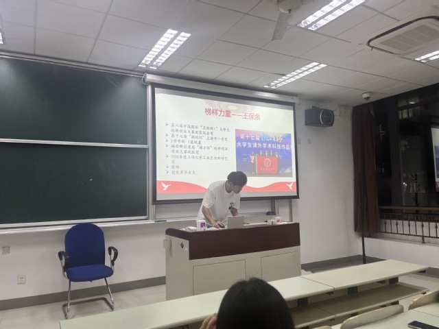 方旖旎曾参与志愿活动超过100小时,她在会上分享了做志愿活动时候的一些感人经历,她的经历深深感染了同学们,大家表示今后要以方旖旎为榜样积极为社会服务。班会邀请到科研项目曾获得第八届中国国际“互联网+”大学生创新创业大赛国家级金奖、第十七届“挑战杯”上海市一等奖的王保余,他分享了自己的科研项目并介绍了科研经历和科研技巧,同学们深受启发和鼓舞。