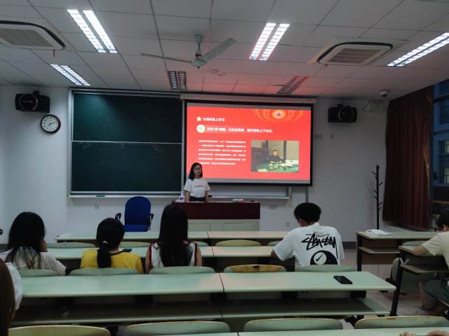 学硕223班在奉贤校区D108开展了“强国之远航,青年当自强——如何将第五次集体学习精神贯彻到大学生实际行动”主题班会,班会由班长张成业主持。