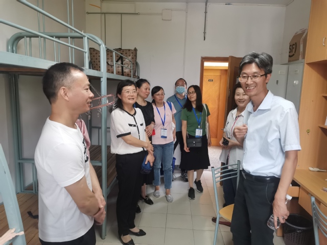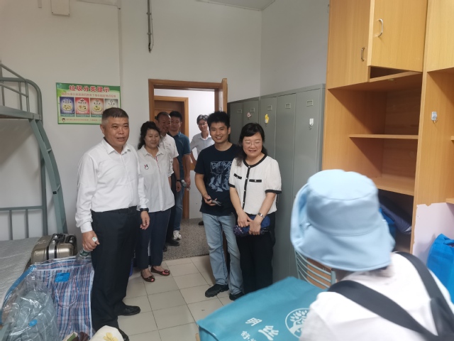 党政领导班子到宿舍看望新生,与学生和家长亲切交流。