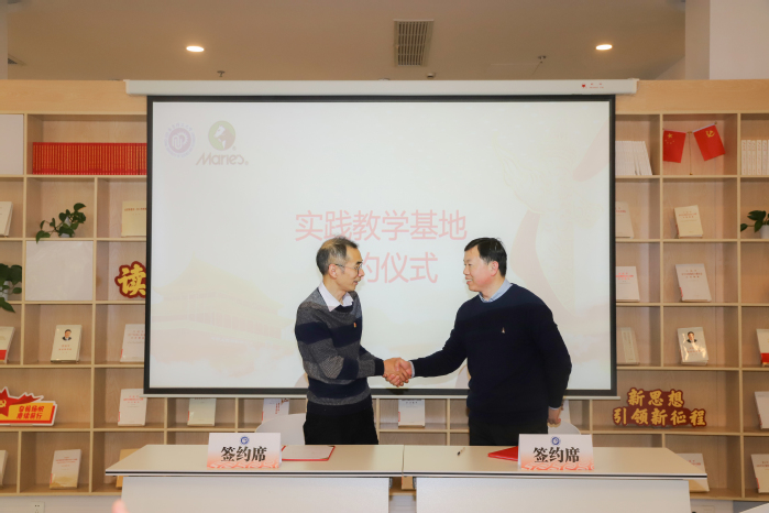 与上海马利画材股份有限公司(以下简称“马利画材”)党建联建暨实践教学基地签约揭牌仪式。马利画材董事长兼党支部书记蒋熙洲、总经理兼党支部副书记闫加伟、董事秘书王青青、技术中心主任莫振宇,国产自拍
