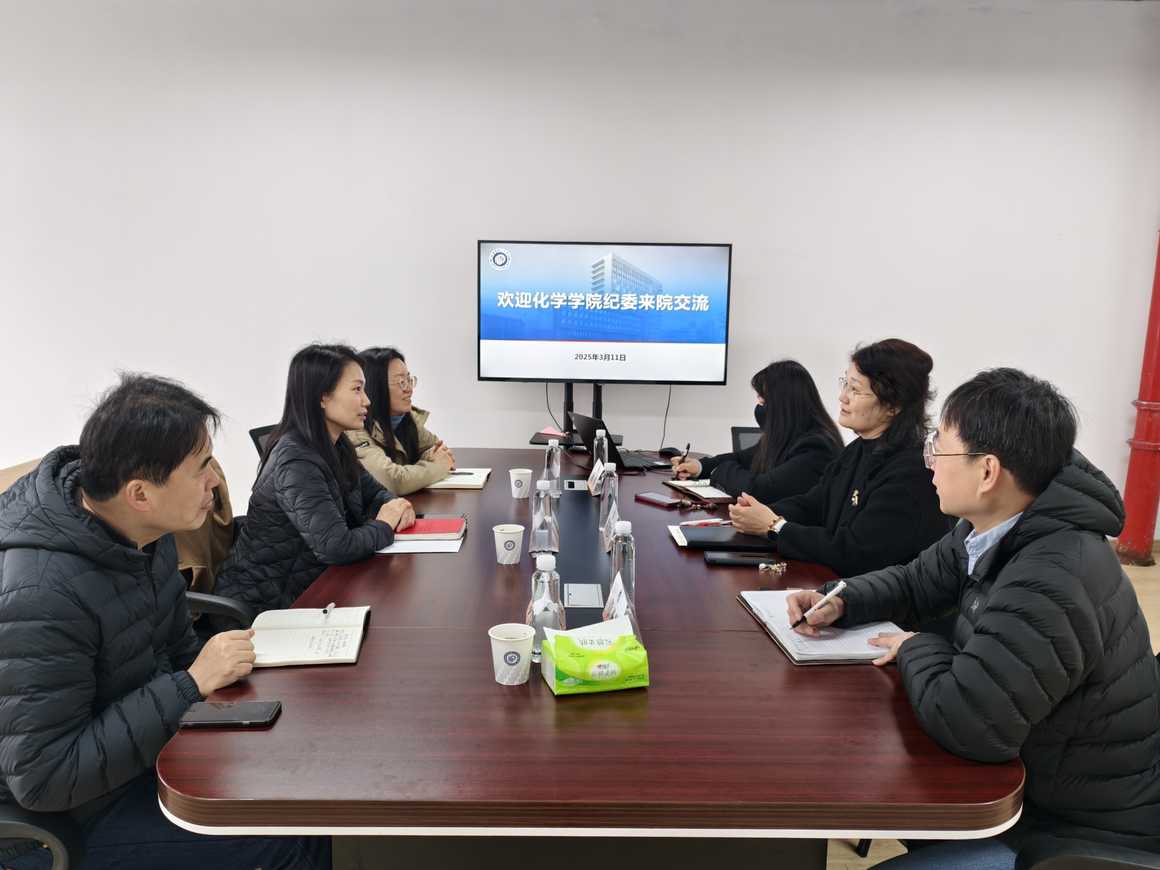 党委副书记兼纪委书记苏建玲,纪委委员顾婷、章圣苗参加座谈会。双方围绕落实全面从严治党主体责任、加强党风廉政建设、推进二级纪委建设等内容进行深入交流。