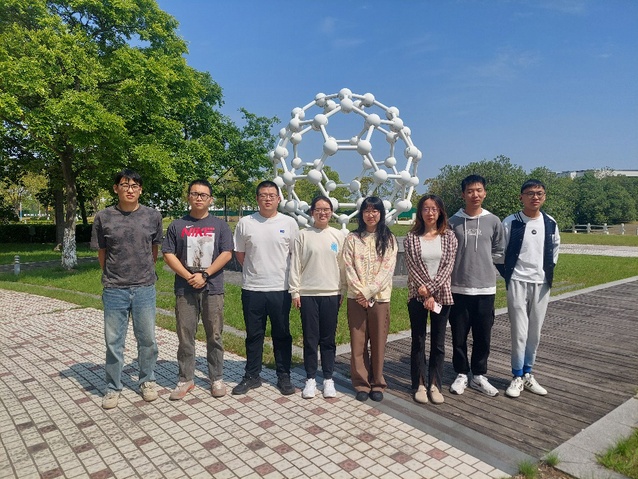 在奉贤校区足球烯雕塑前,班级心理委员陈壹铭与同学们围绕碳材料发展史展开讨论,从上世纪80年代我国首套碳纤维生产装置到如今国产自拍