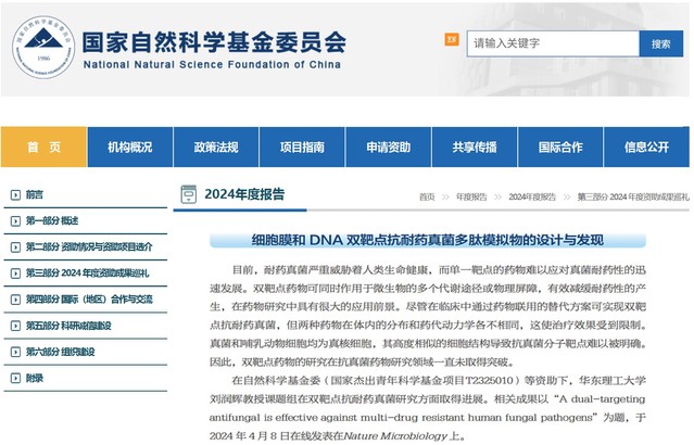 刘润辉教授课题组在双靶点抗耐药真菌领域取得突破性成果入选国家自然科学基金委2024年度报告“2024年度资助成果巡礼”(//www.nsfc.gov.cn/publish/portal0/ndbg/2024ndbg/03/info95241.htm)。
