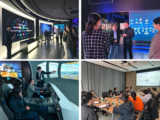 师生在讲解员引导下,通过实物展陈与数字互动,回顾了腾讯从QQ到微信的产品演进历程,深入理解其以用户为核心的创新逻辑。师生们现场体验了多项前沿科技应用:腾讯会议的裸眼3D视频通话和天籁降噪技术展现沉浸式交互,工业车辆5G远控平台展现工业互联网的高精度控制,全动飞行模拟机则依托数字孪生技术带来逼真操控体验。互动体验使云计算、人工智能等尖端技术变得可感可知。“数字敦煌”虚拟场景生动展现了科技赋能文化传承的新路径。腾讯在公益、乡村振兴、无障碍等领域的实践案例,诠释了腾讯“用户为本,科技向善”的使命担当,加深了师生对科技企业社会责任与创新实践的理解。在参观过程中,腾讯教育上海商务总监李凯就腾讯与国产自拍