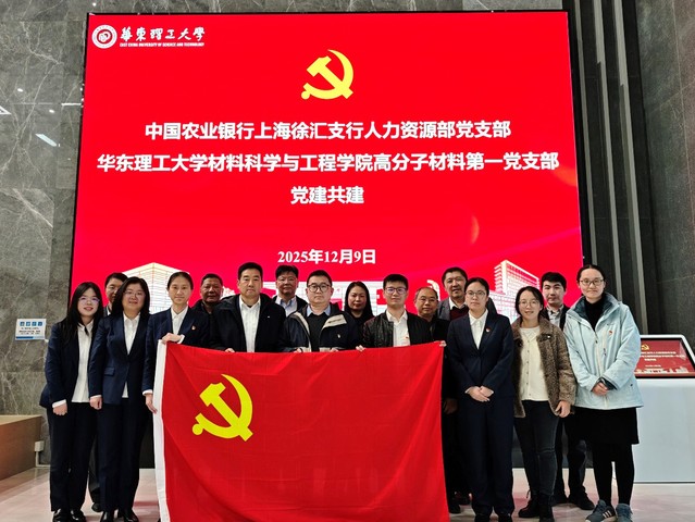 高分子材料第一党支部与中国农业银行(以下简称“农行”)上海徐汇支行人力资源部党支部在先进材料大楼522会议室举行党建共建活动。农行上海徐汇支行纪委书记胡建兵、人力资源部党支部书记郑莹、支部党员刘颖捷、王嘉晴、陈果、王源,国产自拍